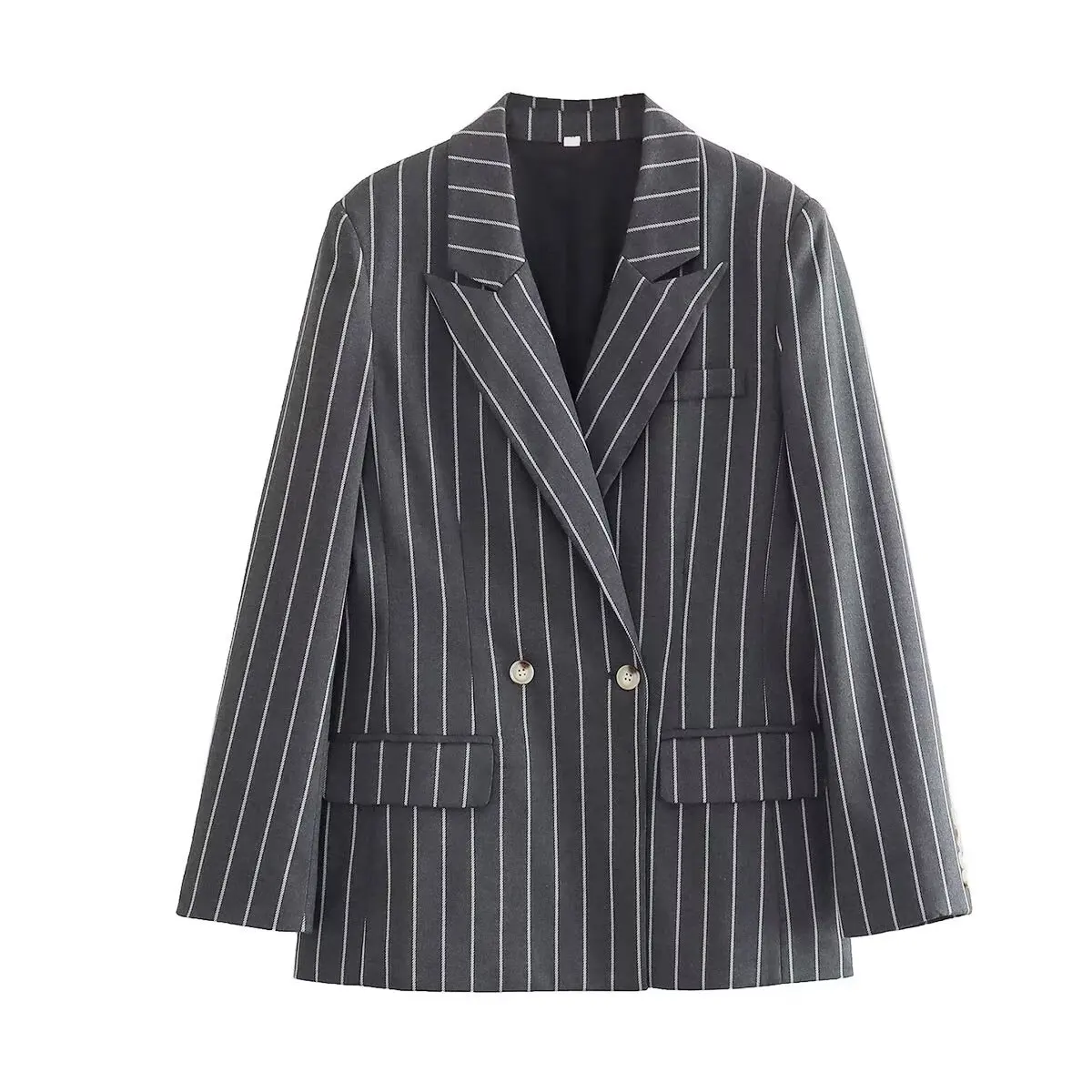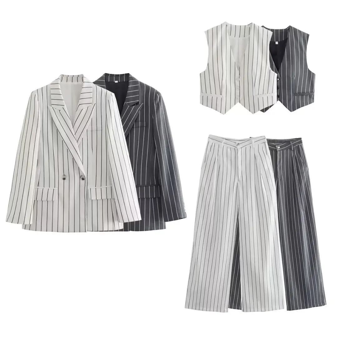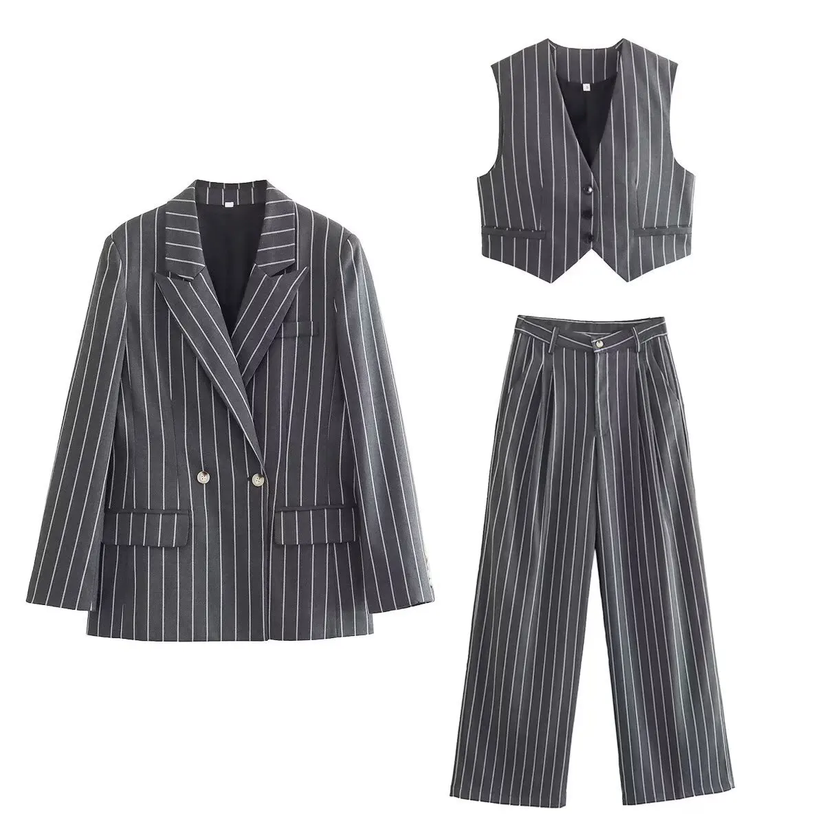 2025 Autumn Women Clothing Fashion High-end Black Stripe Professional Suit Vest Loose Casual Blazer Suit Pants Three Piece Set
